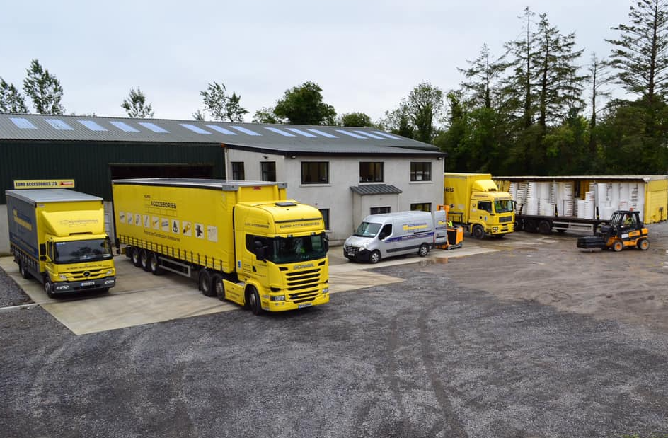 Operating from our Roosky depot in parthership with out sister company Euro Accessories Ltd in the UK and utilising our own multi vehicle delivery fleet with FORS Gold approval, we are ideally suited to cater for delivery requirements anywhere within Ireland and the UK.